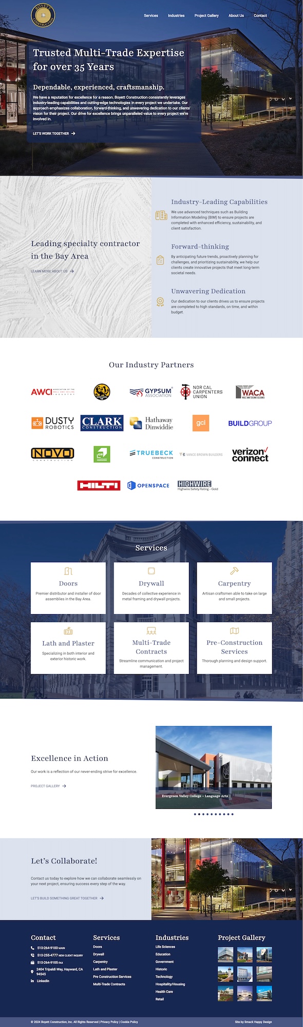 - Improved Branding and Professionalism: By updating the design and content, Boyett Construction will present a more modern and professional image. This is important in industries like construction, where first impressions can impact credibility and trust with potential clients, especially general contractors, their target audience.