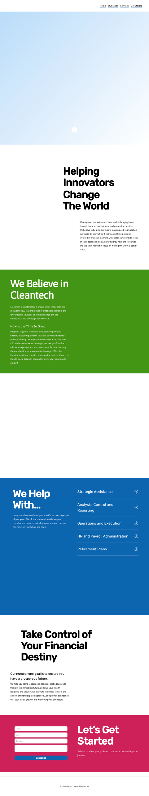 In just a few days, Integrous Financial regained a strong online presence with a clean, branded website. This immediate solution allows their team to focus on infrastructure and growth plans, while giving them confidence that a larger, fully customized website can be launched when the timing is right.