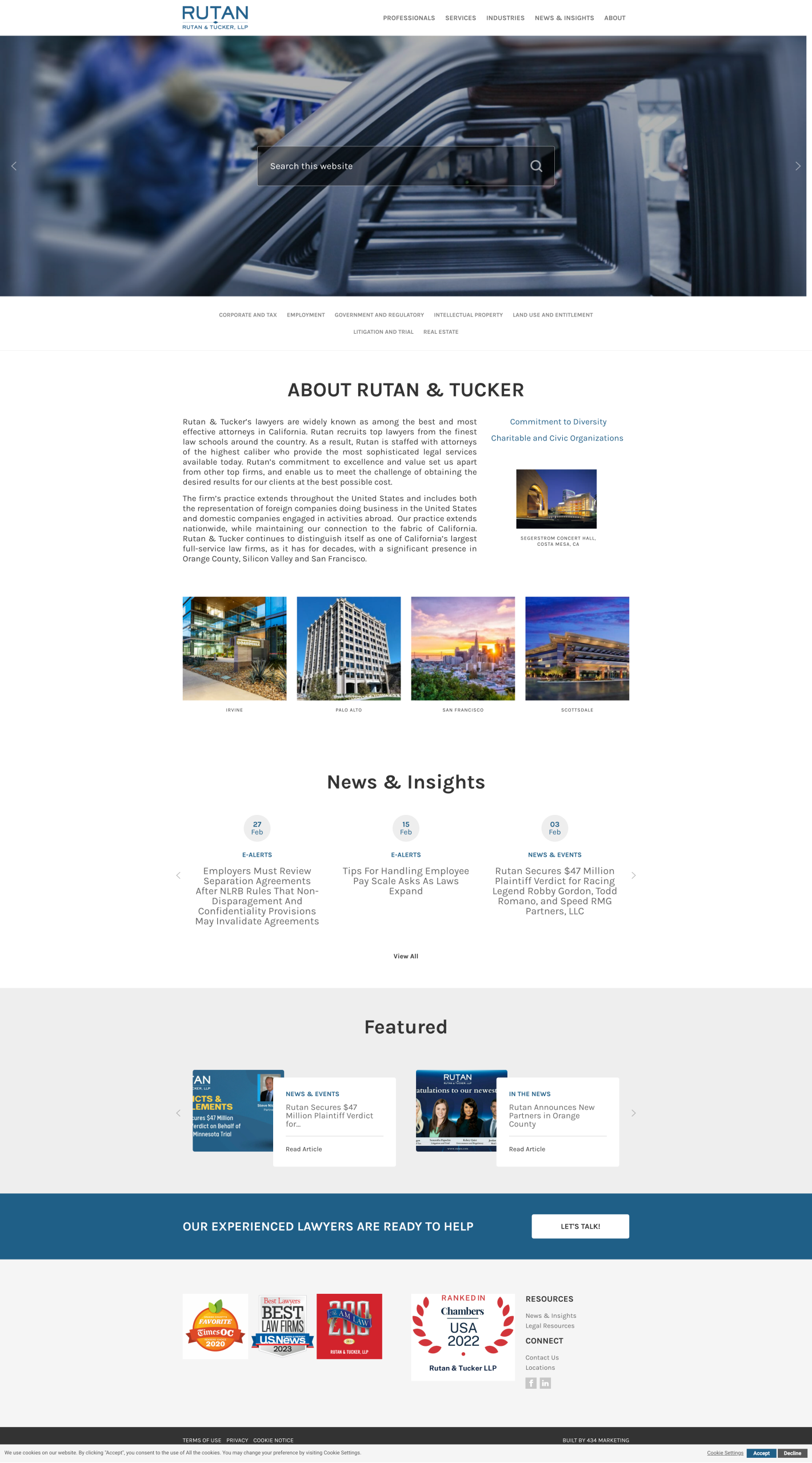 Rutan & Tucker, LLP, a distinguished full-service law firm in California, needed a fresh website that reflected its new branding while serving as a powerful marketing and communications tool. The goal was to modernize the digital experience, attract new clients, and position the firm as a thought leader while maintaining credibility for potential partners.